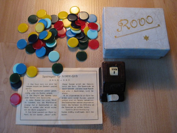 Zu sehen hier auch das Taschenroulette Ru-Li, das Pferderennen Derby und die "Nimm - Gib" Rovo-Variante.