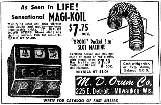 Anmerkung: Da auch in den Produktblättern mit der Möglichkeit des Werbeaufdruckes ("Als vornehme Werbegeschenke auch mit Reklame- oder Andenkenaufdruck lieferbar") geworben wird, meist auf der Geräterückseite und/oder Geräteunterseite, ist schon davon auszugehen, dass es, insbesondere bei den 2ern und 3ern weitere bislang unentdeckte "Werbegeschenke" gab. Das bringen die Zeit und die Sammler mit Sicherheit noch an den Tag.... ;-)....(PS: Bei den "BRODI's" gab's das ja auch...s.u.....).